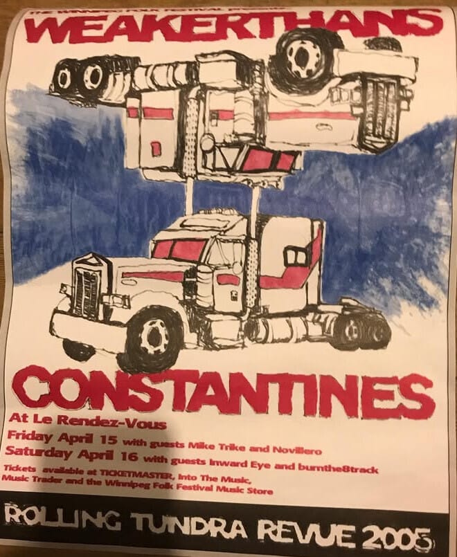 The poster for the Weakerthans and Constantines April 2005 Winnipeg shows